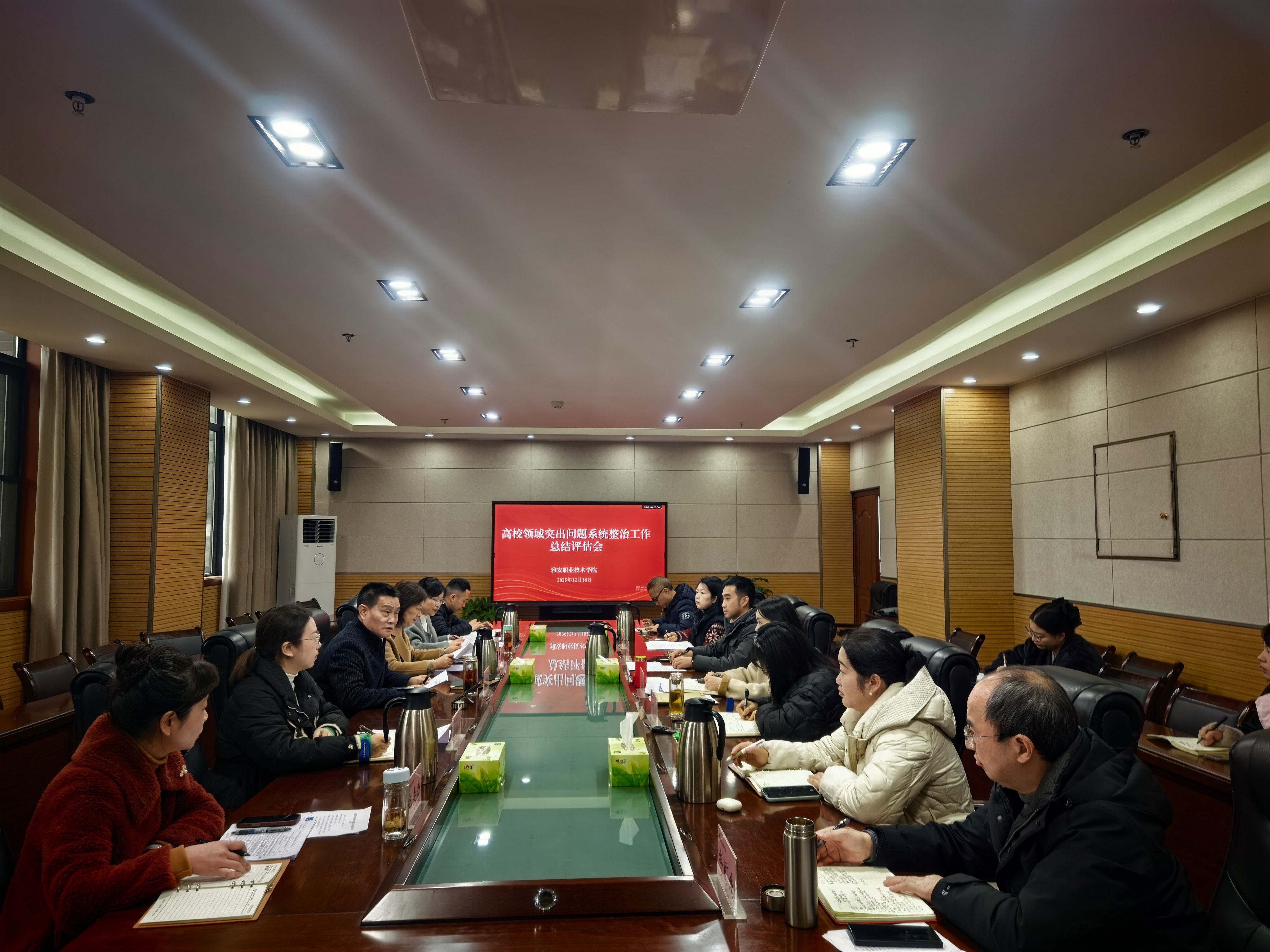 12月18日,学校召开高校领域突出问题系统整治工作总结评估会,阶段性总结系统整治工作成效,部署评估总结阶段任务,纵深推进整治工作走深走实。学校党委书记李春模、党委副书记杨洪媛,以及相关二级单位负责人参加会议。会议由党委常委、组织部部长、人事处处长刘永恩主持。